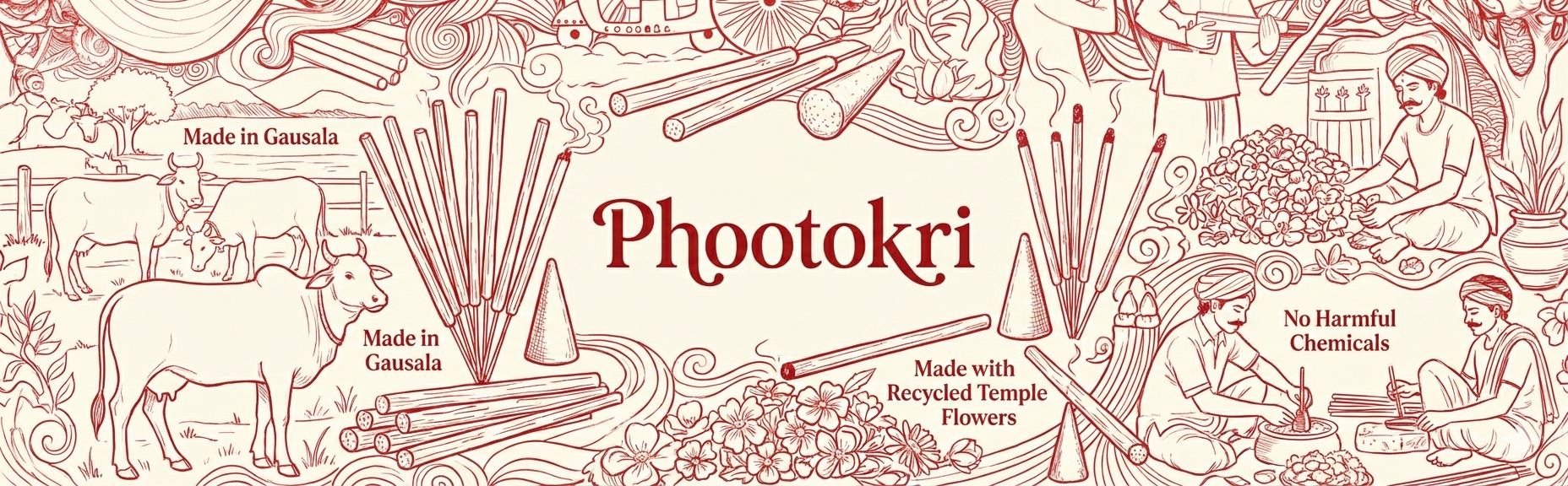 We believe in sustainability and spiritual responsibility. Many of our products are thoughtfully made using recycled temple flowers, preventing waste and honoring sacred offerings.